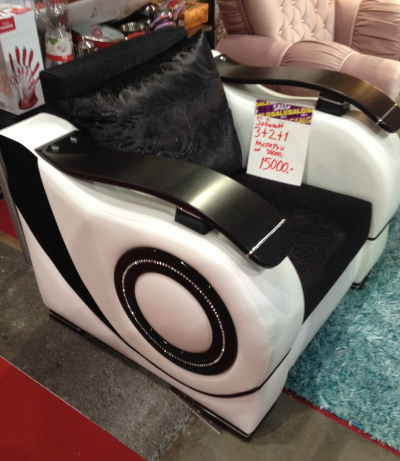 Udenom dette hjørna med annerledes møbler, så va Boligmesså litt sånn som me hadde blitt fortalt at det va; boblebad og grillhytter.